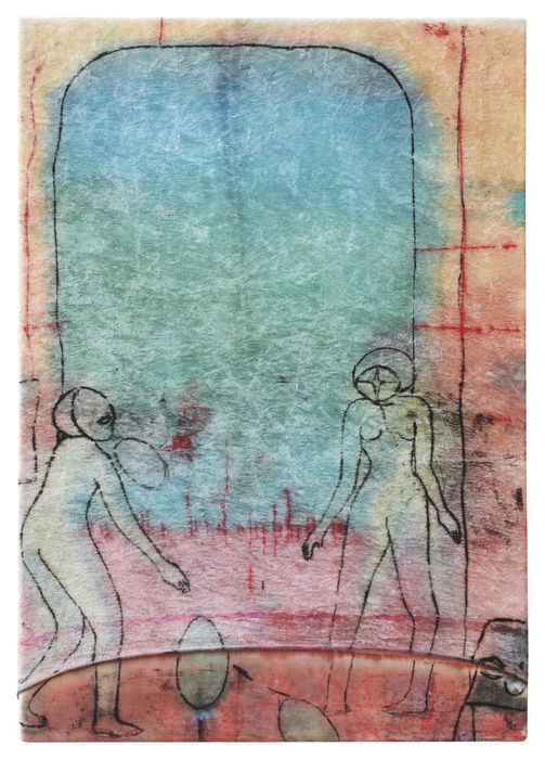 Tinte und Öl auf Leinwand, Tinte auf Chiffon, Fotografie