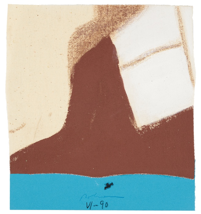 Öl und Ölkreide auf Leinwand aufcollagiert auf liniertem Papier