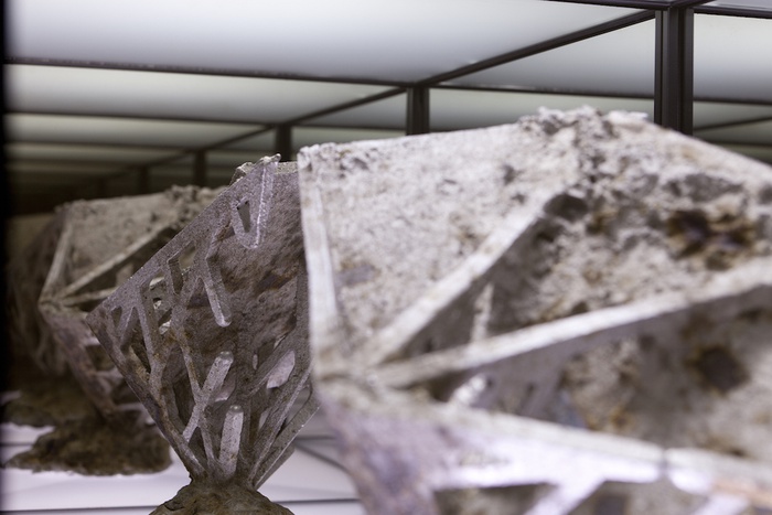 Die KünstlerInnen dieser Ausstellung sind vielversprechende junge Positionen, die oftmals mit internationalem Hintergrund für diese Ausstellung in der Galerie Jahn zusammenkommen. Pauline Beaudemonts animierte Video Arbeit „Melting Lingotto“ verformt das bekannte Fiat-Werk Lingotto in Turin und versetzt es in einen flüssigen Zustand. Von seiner bekannten, großformatigen Typo-Malerei abweichend, überführt Lars Breuer hier seine Arbeit in eine kleinformatige, getriebene und lackierte Aluminiumplatte. Die Arbeiten von Martin Groß sind Holzschnitte auf Papier, die an sogenannte Glitches oder rauschende Stadtpläne erinnern. Julius Heinemanns Arbeiten beschäftigen sich mit grundsätzlichen Themen, die uns zu jeder Zeit beschäftigen sollten, es aber nur allzu selten tun: Licht, Raum, Zeit und ihre jeweiliges Verhältnisse zueinander. Das Künstlerduo Janine Eggert und Philipp Ricklefs fragt in seinen Arbeiten nach dem technisch Erhabenen, Elisabeth Wieser hingegen nach dem Alltäglichen und dem darin liegenden kafkaesken Fiebertraum. Stefan Vogel, der im kommenden Jahr eine Einzelausstellung in der Galerie Jahn haben wird, schafft es immer wieder vermeintlich geglaubte Gegensätze in seinen Bildern zusammenzubringen. In seinen Skulpturen kreiert Alexi Tsioris raumgreifende Zeichnungen und Benjamin Zuber versteht es mit Humor, die grundsätzlichen Probleme unseres Glaubens an Dinge, die uns wichtig sind, zu durchbrechen.
