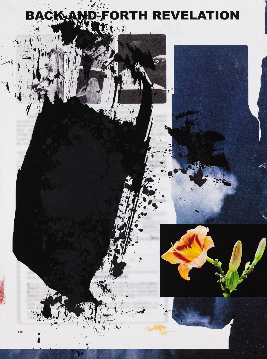 Each work results from a process of layering, erasure, and re-inscription. Fragments are scanned, multiplied, and recomposed until they acquire a pulse of their own. This operation is followed by a tactile intervention - folds, frictions, gestures that unsettle the printed surface. This dialogue between the mechanical and the manual, the distant and the intimate, gives the work a peculiar vibration: an image that is never fixed, always oscillating between becoming and disappearance.