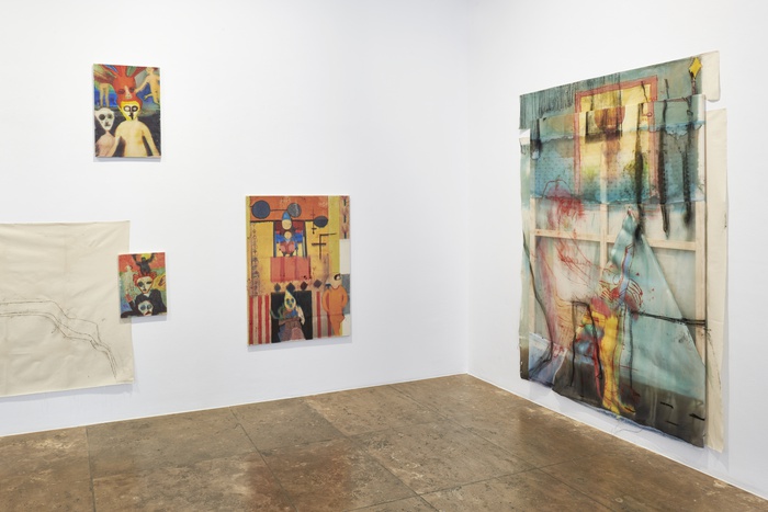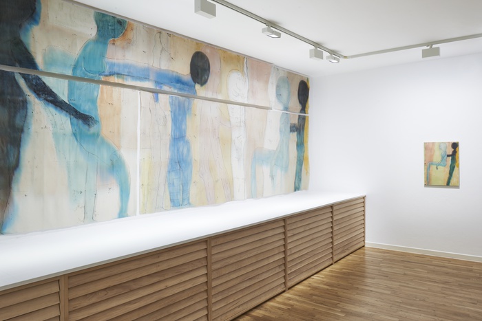 With her constellations of colours, shapes and figures, Gülbin Ünlü opens up a field of associations with the seemingly familiar. This makes her pictures approachable and enables viewers to initiate a game with their own experiences and expectations. Like the works she has been creating for around five years, the current works also have a complex development process behind them. It begins with a sifting through the possible visual working material that the artist has collected and is surrounded by in her studio: family photos, magazine and other media images, the results of research - a personal and internal "archive" in which the experiences, impressions and views of a 21st century woman with a post-migrant biography are sedimented. Image elements from a wide variety of origins are then selected, combined in the computer to create an initial composition and edited. "[Only] imitation is true innovation," says Ünlü about her approach, meaning that new images can only be created from other, already existing and seen images. This also happens when the artist recently brings artificial intelligence into play as a sparring partner that helps shape the draft image, the digital sketch for the respective final image. Ünlü describes this process as a ping-pong, a back and forth of editing suggestions, primarily under stylistic or art-historical criteria, a kind of selection from a public image archive (which is what the AI ultimately is) and this also as a logical continuation of her previous work with the personal card box or the family photo album. By including the AI, the artist poses the question of authorship more consciously than ever before, putting its dissolution or reorganisation up for discussion more clearly than before.
