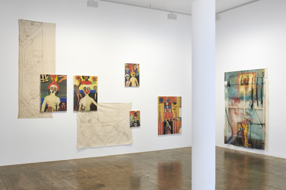 Only after a long design process does the realisation of the haptic-physical, actual work of art begin, which can materialise on a wide variety of image carriers and in all possible formats - as a picture on the wall, as a performance or video, sometimes also as a sound piece, as a three-dimensional object or in a larger, installative context. Gülbin Ünlü has developed a hybrid technique for her pictures that combines both painting and printing. For the artist, this special technique functions as a kind of "leveller", as she herself describes it. It enables her to eliminate the differences between the original image sources (drawing, painting, photography, print, analogue and digital) and thus aesthetically amalgamate content, contrasts or contradictions that are often considered incompatible. Ünlü came up with her technique while searching for a way around the "stroke", the traditional, (mostly) male-connoted gesture in painting that stands for the "disegno" of an artist-author controlling all processes of image production. Ünlü's technique is also fundamentally conceptual, but also leaves the creation of the picture to chance at certain points. And she likes to transgress artistic "no-go areas" on the way to the manifestation of the artwork, for example when panne velvet, lace and other decorative fabrics are used as picture supports, when glitter effects are used or transparent fabrics make the underlying stretcher frame visible - and thus also painting as a construction.