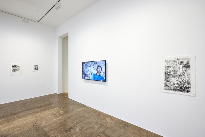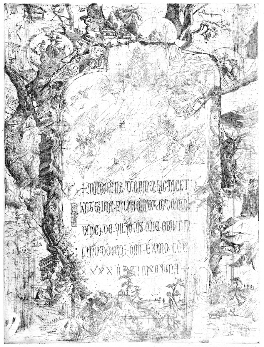 Although Jung uses a historical artefact - the tombstone of Katerina Vilioni, who died in 1342 – as a motif for the four etchings entitled "Katerina" (2020), the images also invite speculation. The stone was found in the 1950s by the Chinese People's Liberation Army among diverse materials that were, of all things, used for the city wall of Yangzhou. It is one of the earliest pieces of evidence of the Europeans who settled in East Asia. Katerina Vilioni was a member of a family of merchants from Genoa who settled at the other end of the Silk Road. Her family was already trading in Tabriz in Iran in the 11th century. The year of Vilioni's death suggests that she fell victim to the plague that spread along the trade routes. The reduced imagery on her tombstone combines Asian and European visual languages. The execution of Saint Catherine of Alexandria is shown in a kind of picture story, a mythical figure of Christianity often portrayed in European art history. At the behest of the Roman Emperor Maxentius, she is said to have been tortured and executed after converting 50 of his best philosophers to Christianity. Angels are said to have accompanied her during the martyrdom and taken her body to Mount Sinai, where today the Greek Orthodox Monastery of Saint Catherine’s – one of the oldest Christian convents – still stands on Islam-dominated territory. Mohammed himself is said to have issued it with a letter of protection, saving it from conquest and destruction to this day. The historical references and thought processes that Jung’s etchings depict are as interlaced and frayed as her drawn lines. Irrespective of whether you start with Katerina Vilioni or Catherine of Alexandria, whose story – another historical digression – apparently goes back to the Greek mathematician Hypatia, who was murdered in Alexandria in 415. This time the murder was committed by Christians determined to dispense with an educated pagan woman. History itself is full of possibilities of what has been, which splinter and reshape the supposed certainties of the present.